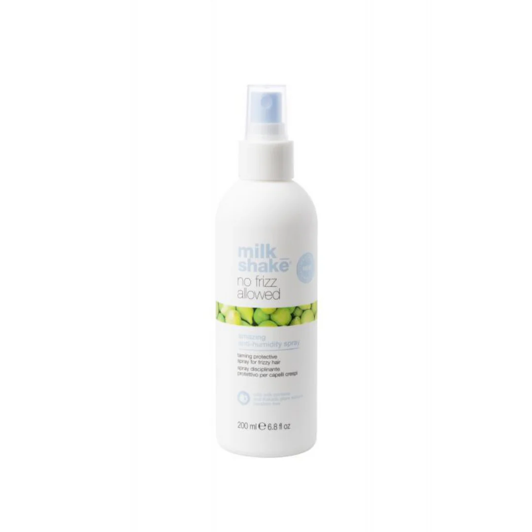 Milk_Shake No Frizz Allowed – Amazing Anti-Humidity Spray er en lett, usynlig spray som beskytter håret mot luftfuktighet og frizz. Den skaper en beskyttende film som forsegler håret, kontrollerer frizz og gir en glatt og glansfull finish – perfekt for uforutsigbare værforhold. For å oppnå best mulig resultat, kombiner med Milk_Shake No Frizz Allowed Perfecting Shampoo.